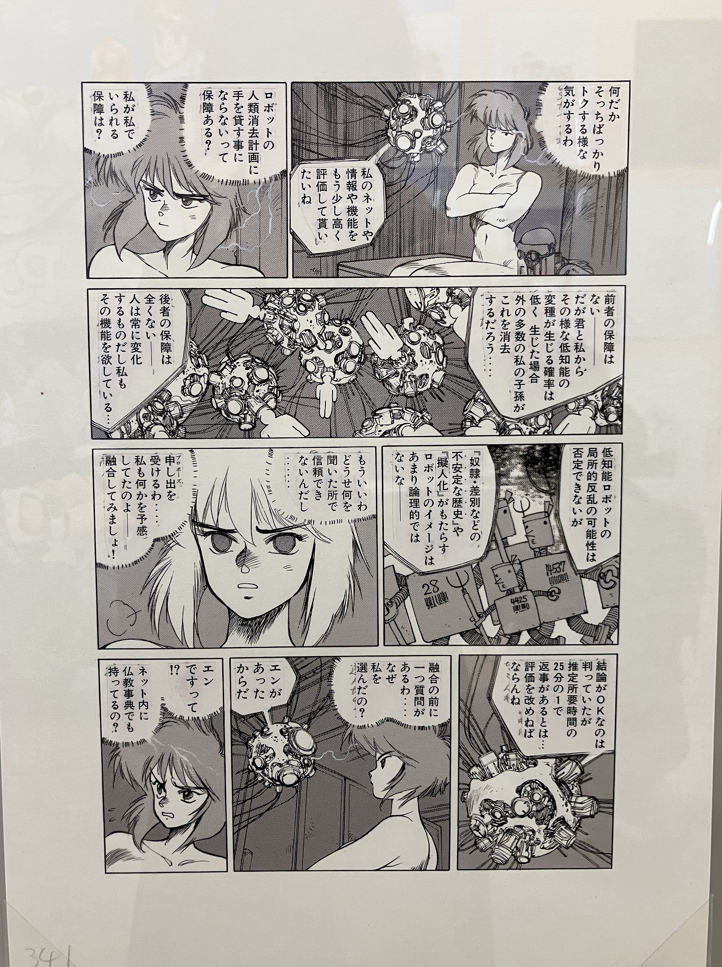 士郎正宗の世界展も見られて嬉しい〜っと喜んだものの大阪は原画ではなく超高精細印刷の複製原画とのことでちょっとがっかりしてしまった。トーンとベタの処理見たかったよ