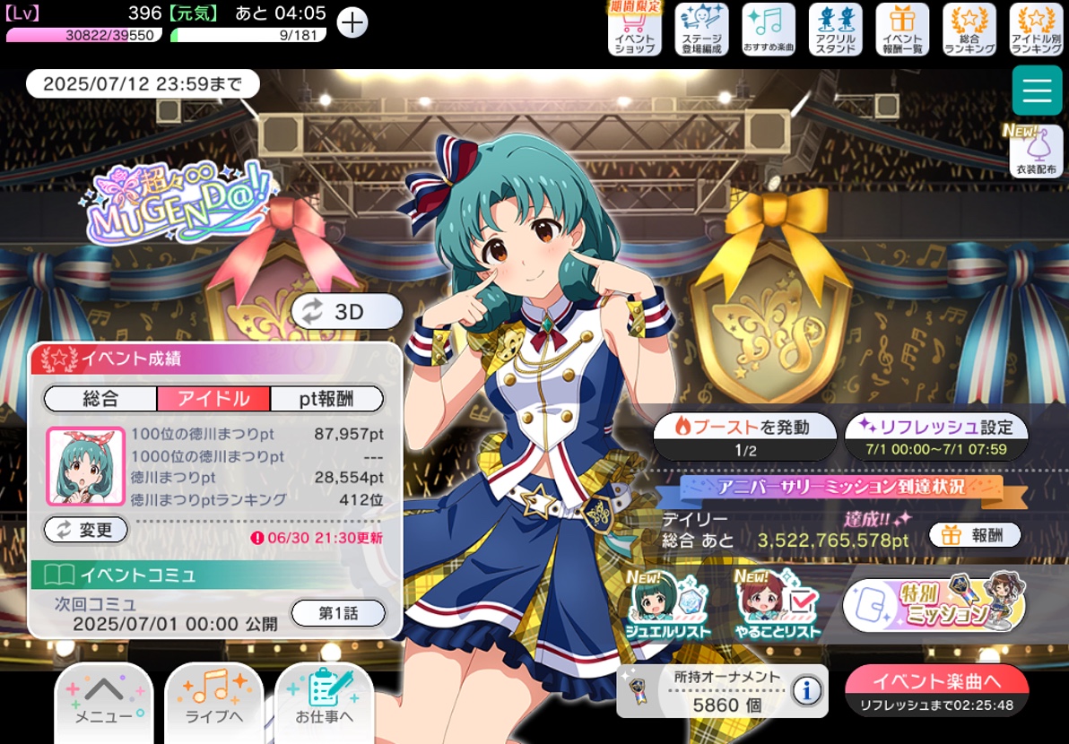 アイドルマスターミリオンライブシアターデイズの周年イベントが始まってしまい、走り方を全て忘れたためデイリー消化に1時間くらいかかった あり得ないだろ