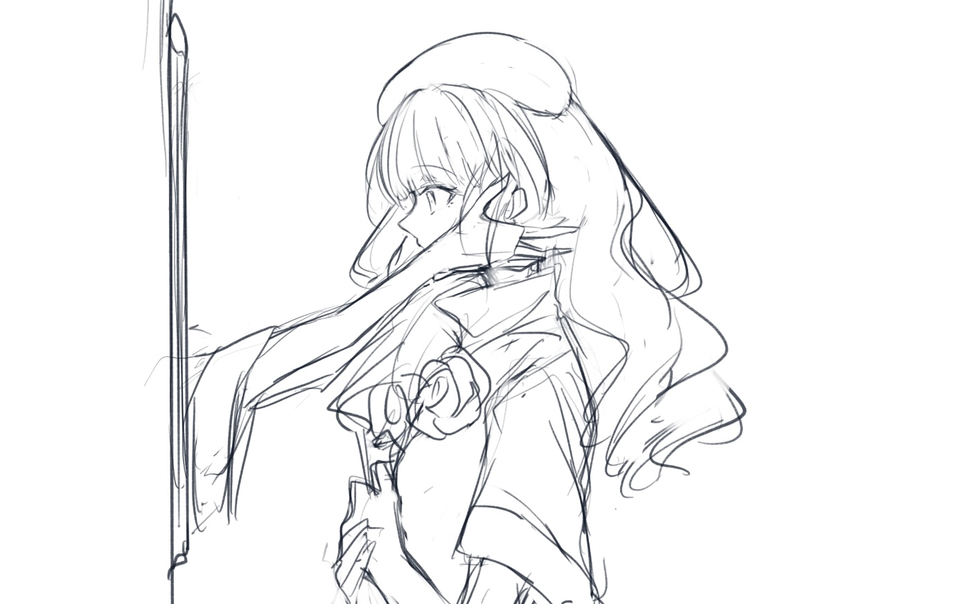 これは絵を描くリハビリし始めて色が全然塗れない頃(難しいから)描いた絵だが、この頃の線に対する情熱かなり良かったな。画面の明暗とコントラストも真剣に考えていた。今は線画の美しさへの執着を捨てたのだが、過去の絵を見返してこのくらい真剣に描かないと駄目だなと襟を正した。